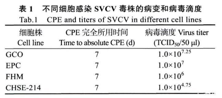 表1不同细胞感染SVCV毒株的病变和病毒滴度