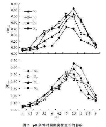 图2 初始pH对固氮菌株生长的影响