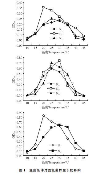 图1 温度条件对固氮菌株生长的影响