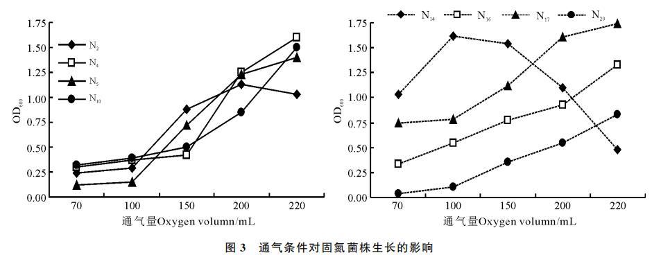 图3 通气条件对固氮菌株生长的影响
